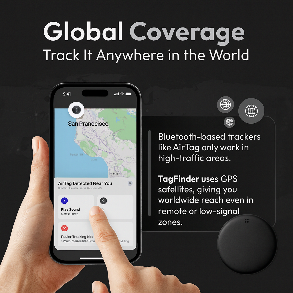 Yes — TagFinder™ offers global GPS coverage, so you can track your belongings anywhere with an internet connection.